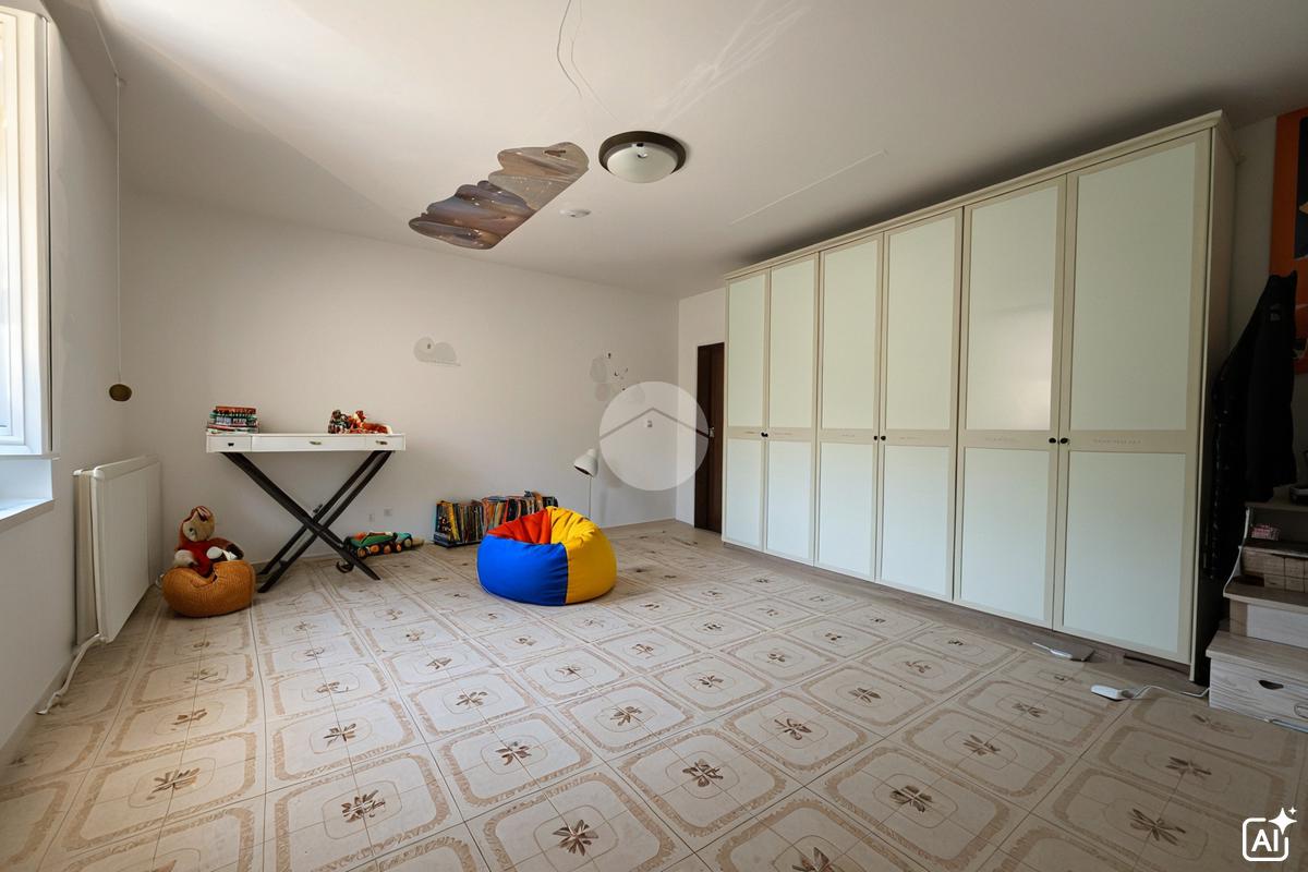 Proseguendo al secondo piano, si accede alla seconda camera da letto, anch'essa dotata di bagno privato, offrendo così un'ulteriore zona notte che può essere utilizzata come camera per gli ospiti o come studio privato. Questa disposizione su tre livelli permette di avere una chiara separazione delle aree giorno e notte, garantendo privacy e comfort per tutti i membri della famiglia.