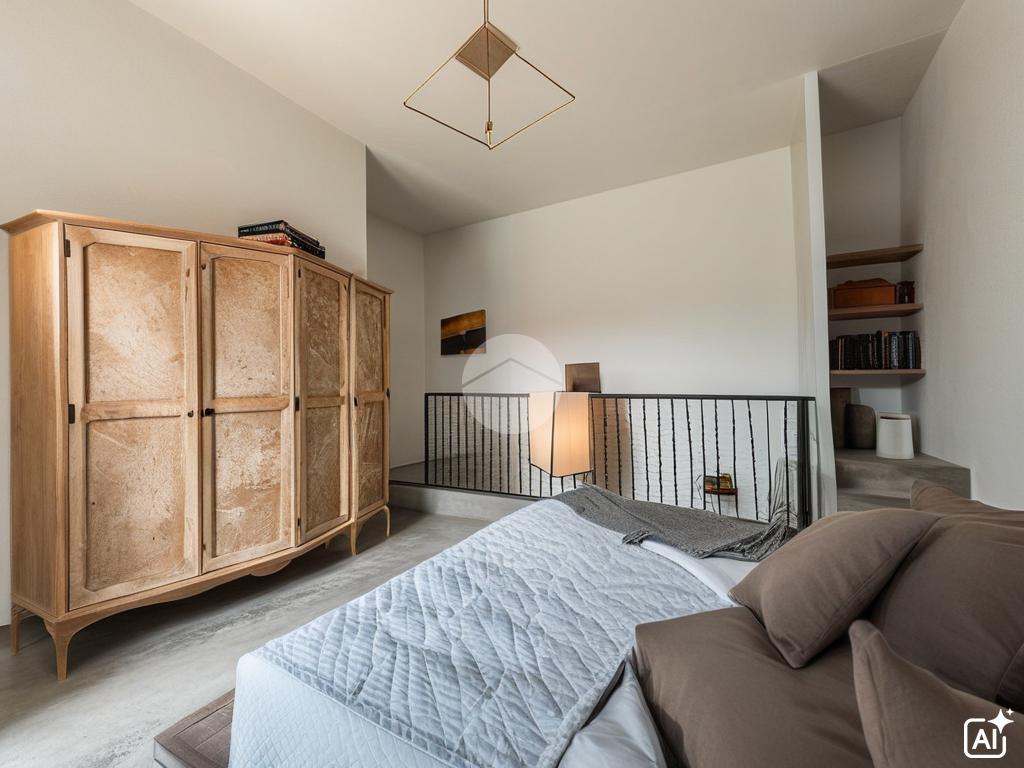 La distribuzione interna della casa è stata progettata per ottimizzare gli spazi e garantire una funzionalità eccellente. Al piano terra, l'ingresso si apre su un accogliente balcone che conduce alla cucina abitabile, dotata di un bagno di servizio. Questo spazio è perfetto per chi ama cucinare e desidera un ambiente conviviale e luminoso. La scala interna ci porta al primo piano, dove troviamo una spaziosa e tranquilla camera da letto, ideale per garantire notti serene e ristoratrici.
